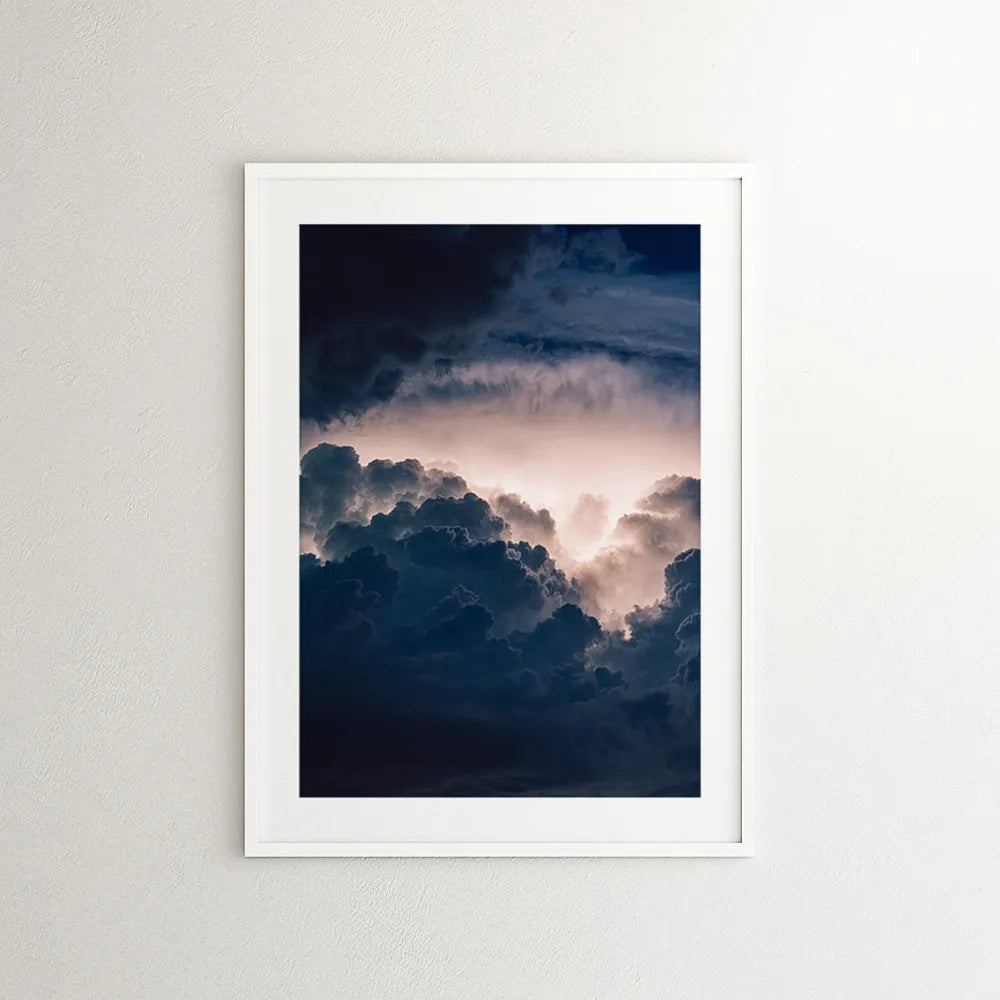 NIMBUS – A moment between chaos and stillness. This striking celestial image captures the fleeting moment in which a storm rages – yet an almost otherworldly calm remains. Dark, dramatic clouds pile up, while a mysterious light erupts from within the storm.